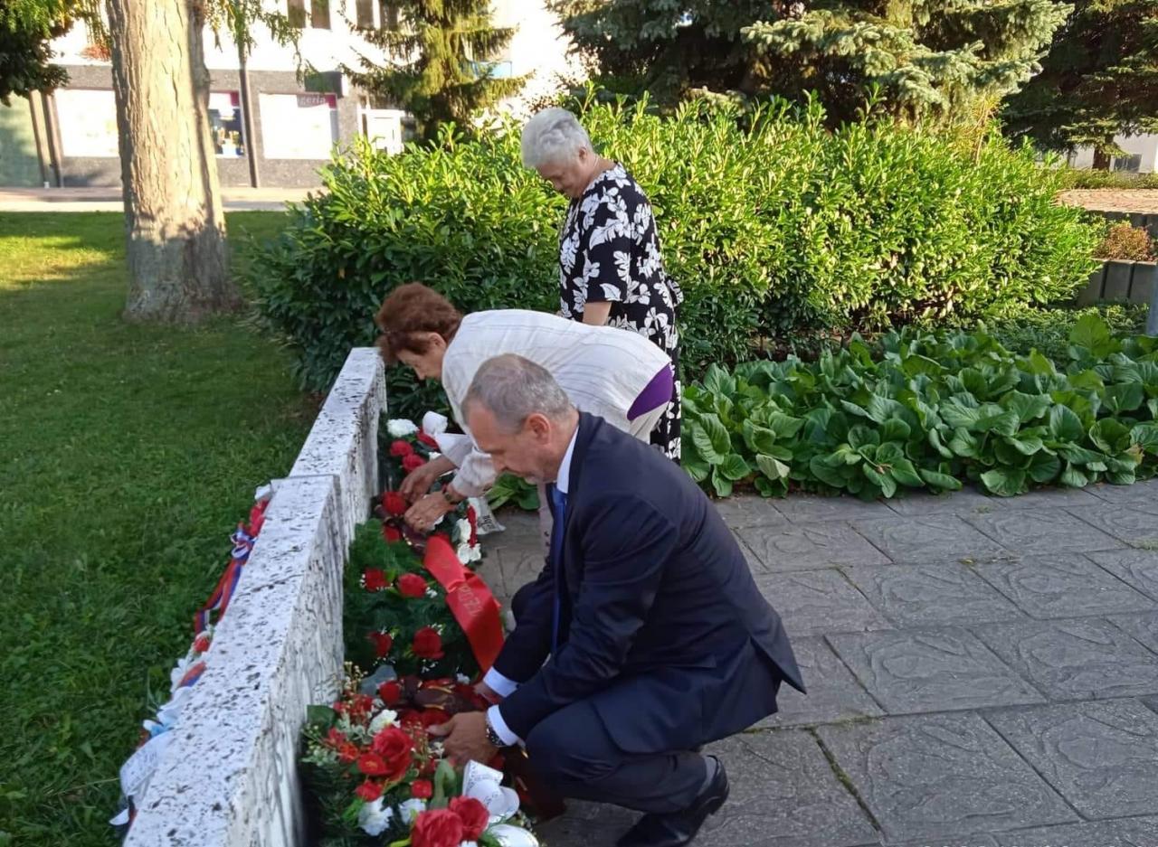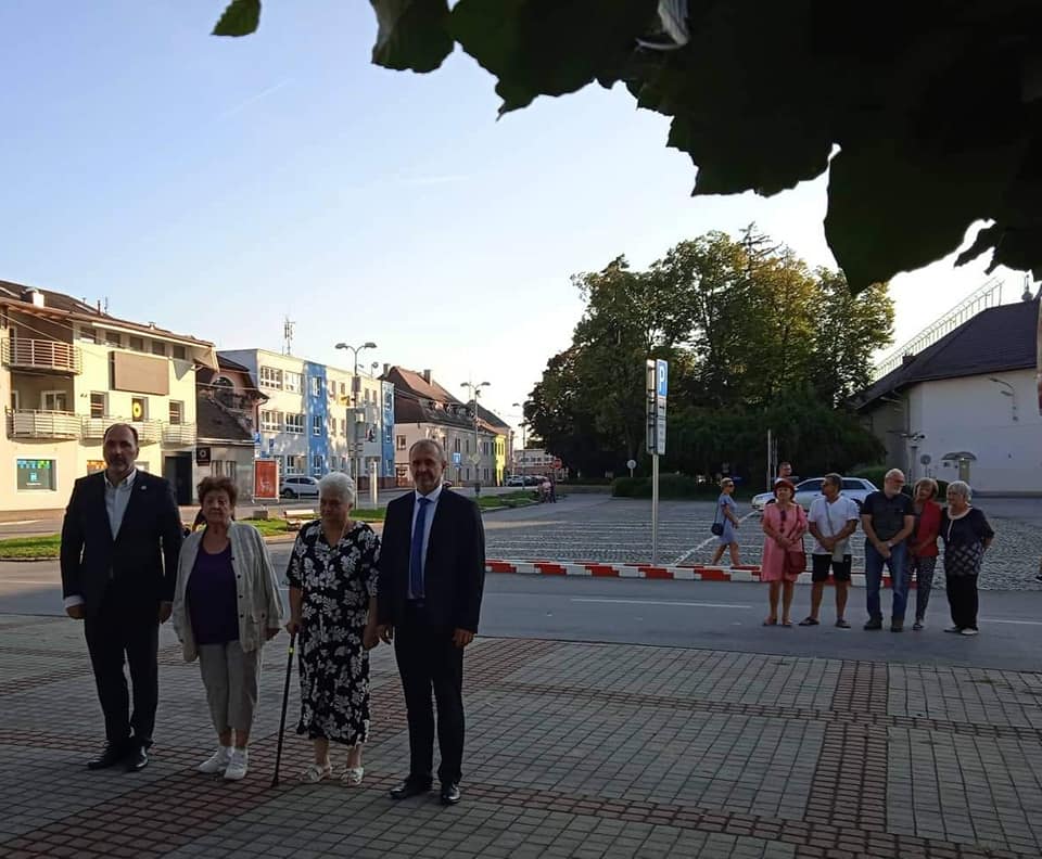 Predstavitelia Mesta Ilava - primátor Ing. Viktor Wiedermann a viceprimátor Ing. Anton Bajzík, členky Únie žien (OO Ilava) - p. Hrubá a p.Prosczuková a poslanci za SMER-SD si výročie uctili položením vencov k pamätníku SNP na Mierovom námestí.