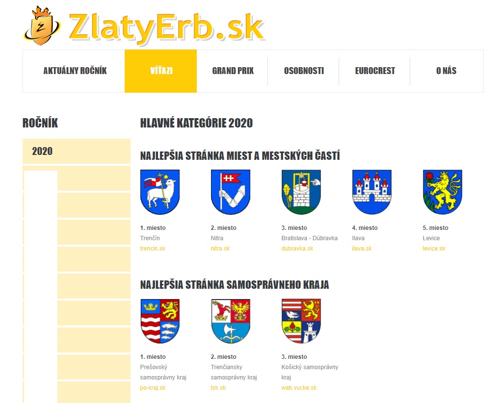 Súťaž ZlatyErb.sk každoročne vyhlasuje Únia miest Slovenska a eSlovensko spoločne so Združením informatikov samospráv Slovenska a Úniou nevidiacich a slabozrakých Slovenska. Tento rok udeľovanie cien prebehlo elektronicky. Hlavným cieľom súťaže ZlatyErb.sk je podporiť informatizáciu slovenských samospráv, oceniť výnimočné projekty a ohodnotiť snahu zástupcov samospráv efektívne a transparentne využívať informačno-komunikačné technológie a tým zvyšovať kvalitu služieb pre občanov.